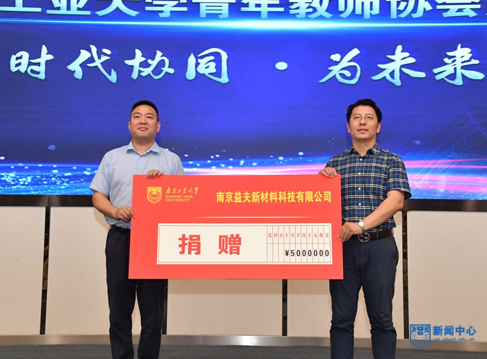 协会设立了“南工大青教协会基金”,党委教师工作部黄锁明部长代表学校接受了南京方通科技有限公司董事长张建军、南京益夫新材料有限公司董事长刘小全的捐赠。化工学院副院长朱家华教授作为青年教师协会会长上台发言,表示将让协会成为学科前沿发展和交叉融合最具活力的交流平台,成为学校整体规划和青年教师团体发展的沟通渠道,成为关心青年教师身心健康和工作生活的服务平台。