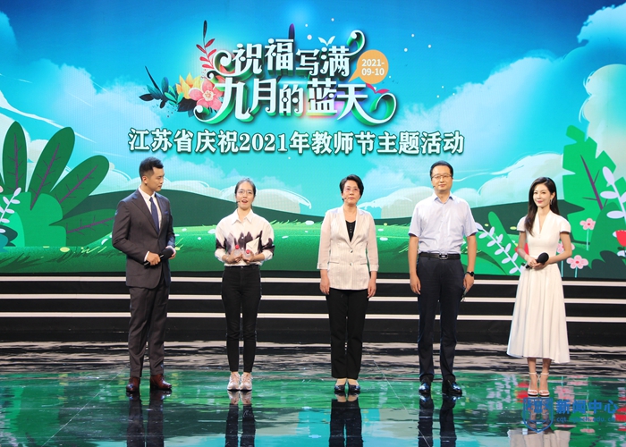 9月9日晚,江苏电视台教育频道全程播放了江苏省教育厅主办的“祝福写满九月的蓝天”——江苏省庆祝2021年教师节主题活动,多元展示了江苏教育改革发展和教师队伍建设的显著成绩,宣传以德育人的教师典型。
