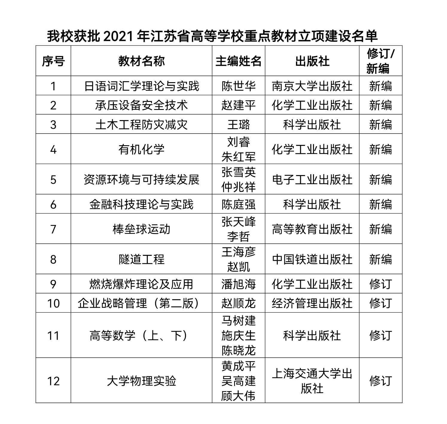 11月1日,江苏省高等教育学会公布了2021年高等学校重点教材立项建设名单(苏高教会〔2021〕39号),米兰12本教材名列其中,标志着米兰教材建设工作取得又一重大进展。