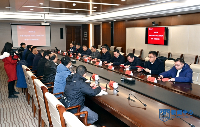 春节前夕,中国石化扬子石油化工有限公司党委书记顾越峰、总经理卫达一行来校进行科技合作交流并签署战略合作协议。校党委书记芮鸿岩、校长乔旭以及相关职能部门负责人参加洽谈交流会。
