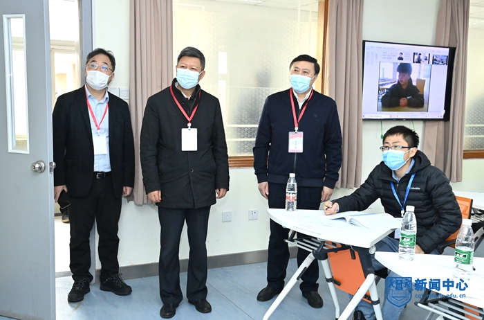 26日上午,校党委书记芮鸿岩、校长乔旭、副校长凌祥对远程复试现场进行了巡视,党委研工部部长、研究生院常务副院长张广明汇报了复试组织与疫情防控、考生数量、服务保障等情况。校领导在巡视中强调,要以最高标准统筹做好疫情防控和复试工作安全,严格规范流程和工作纪律,加强信息公开,确保复试工作的安全性、公平性和科学性。同时,充分发挥复试的综合考察作用,坚持择优录取原则,进一步提高研究生生源质量。