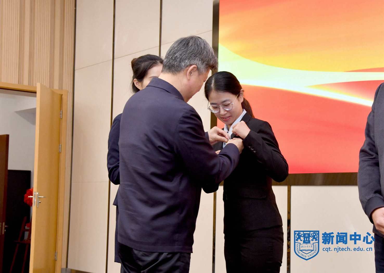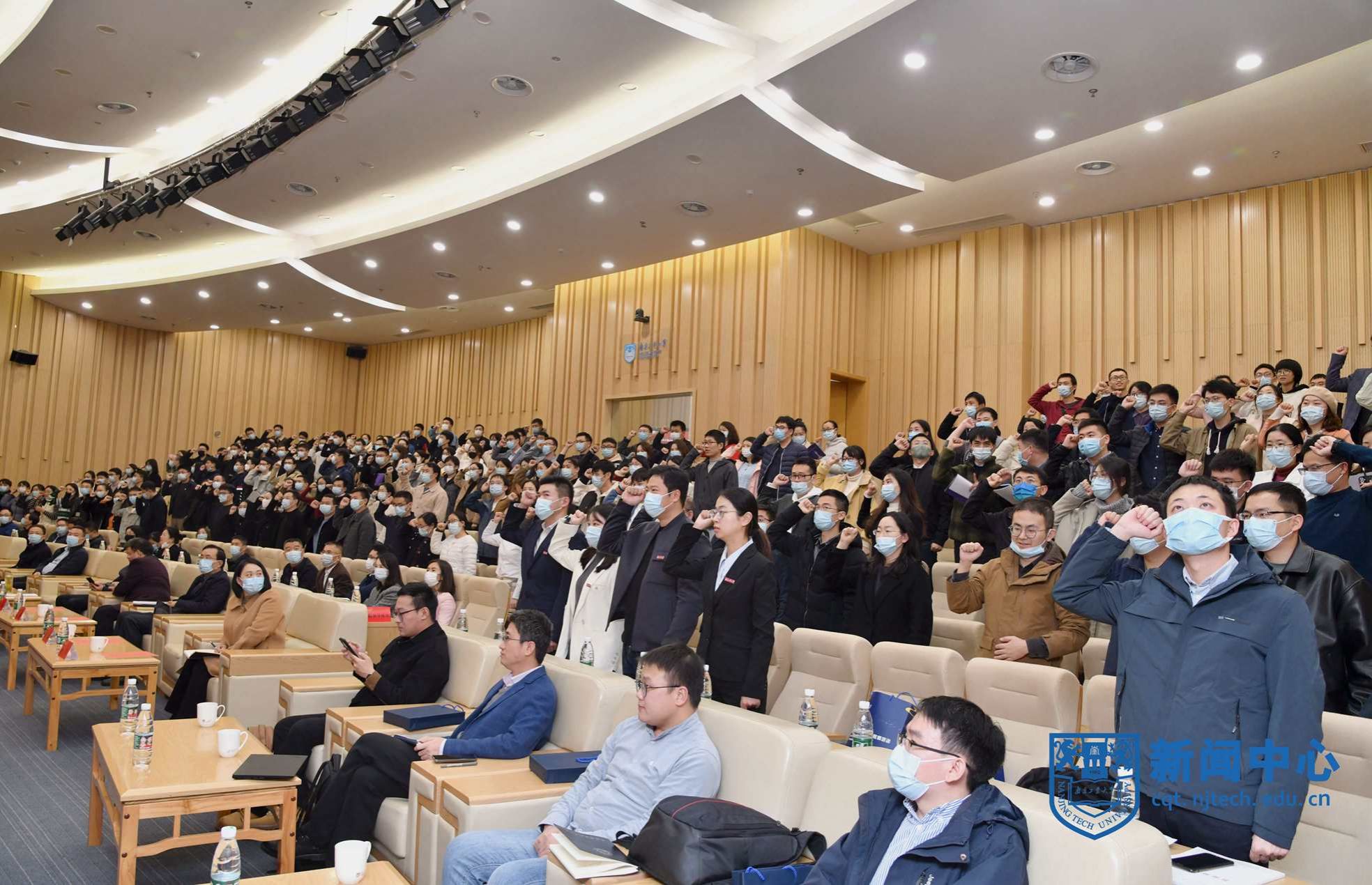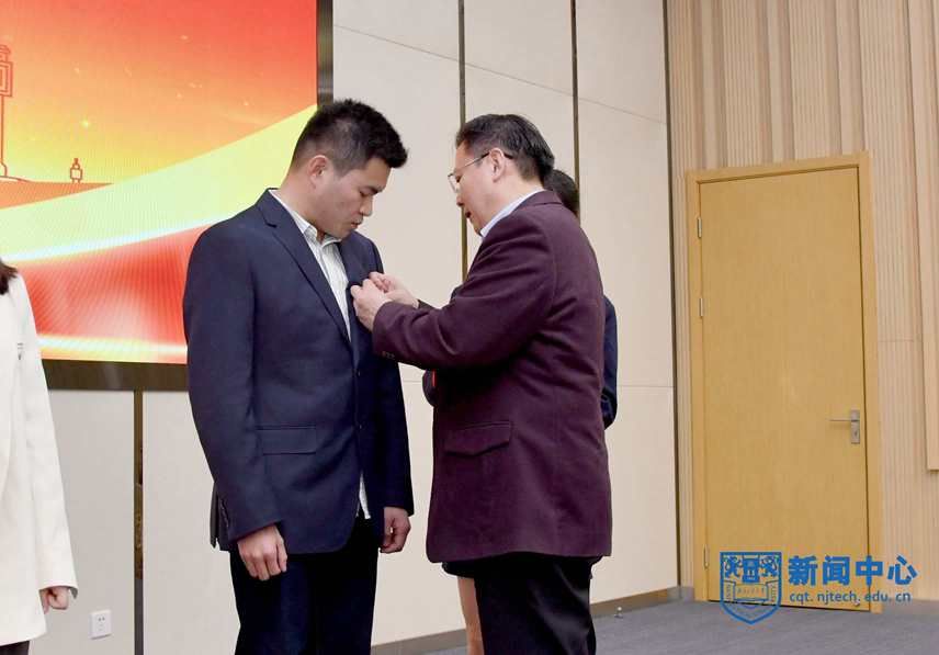 会上,四位新进教师代表上台接受了佩戴校徽仪式;新进教师代表安全科学与工程学院卜亚杰老师带领大家进行了入职宣誓;新进教师代表生物与制药工程学院江苏特聘教授孙睿岩老师作分享发言。