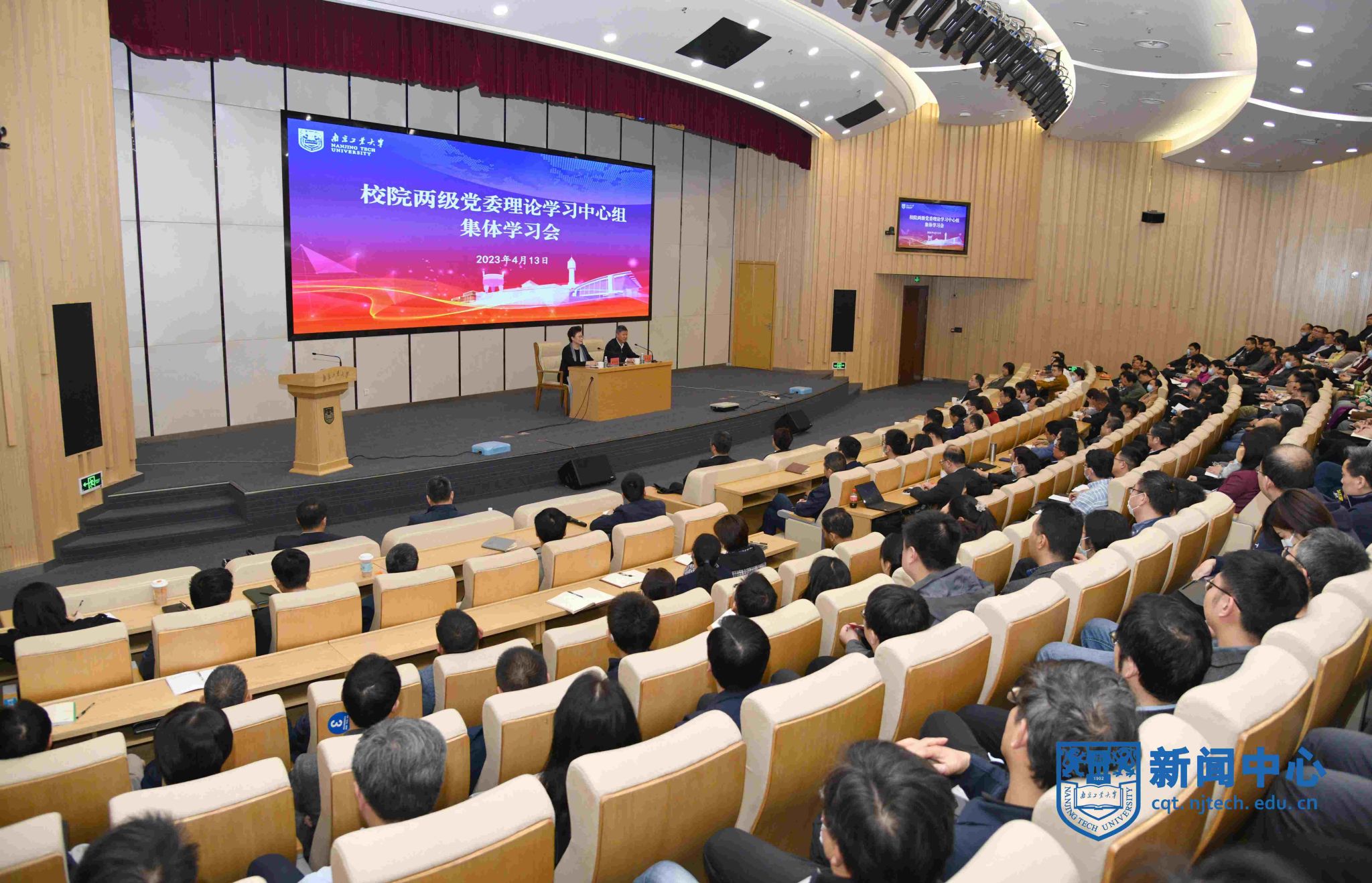 4月13日下午,学校在弘毅楼五楼报告厅举办校院两级党委理论学习中心组集体学习会。省委委员、省委国安办副主任、省国家安全厅党委书记、厅长陈德鹰作专题辅导报告。全体在校校领导、校院两级党委理论学习中心组成员、全校中层干部、学工干部代表等相关人员参加会议。党委书记芮鸿岩主持会议。