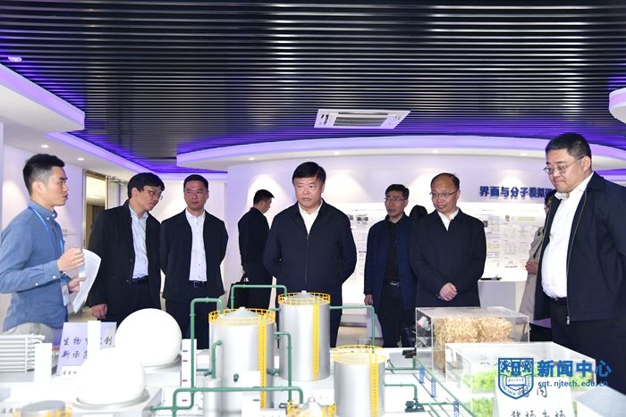 施卫东校长一行参观了时钧园、材料化学工程国家重点实验室展厅。双方就科技创新、校地融合发展、产学研合作、财务管理等工作展开深入交流。