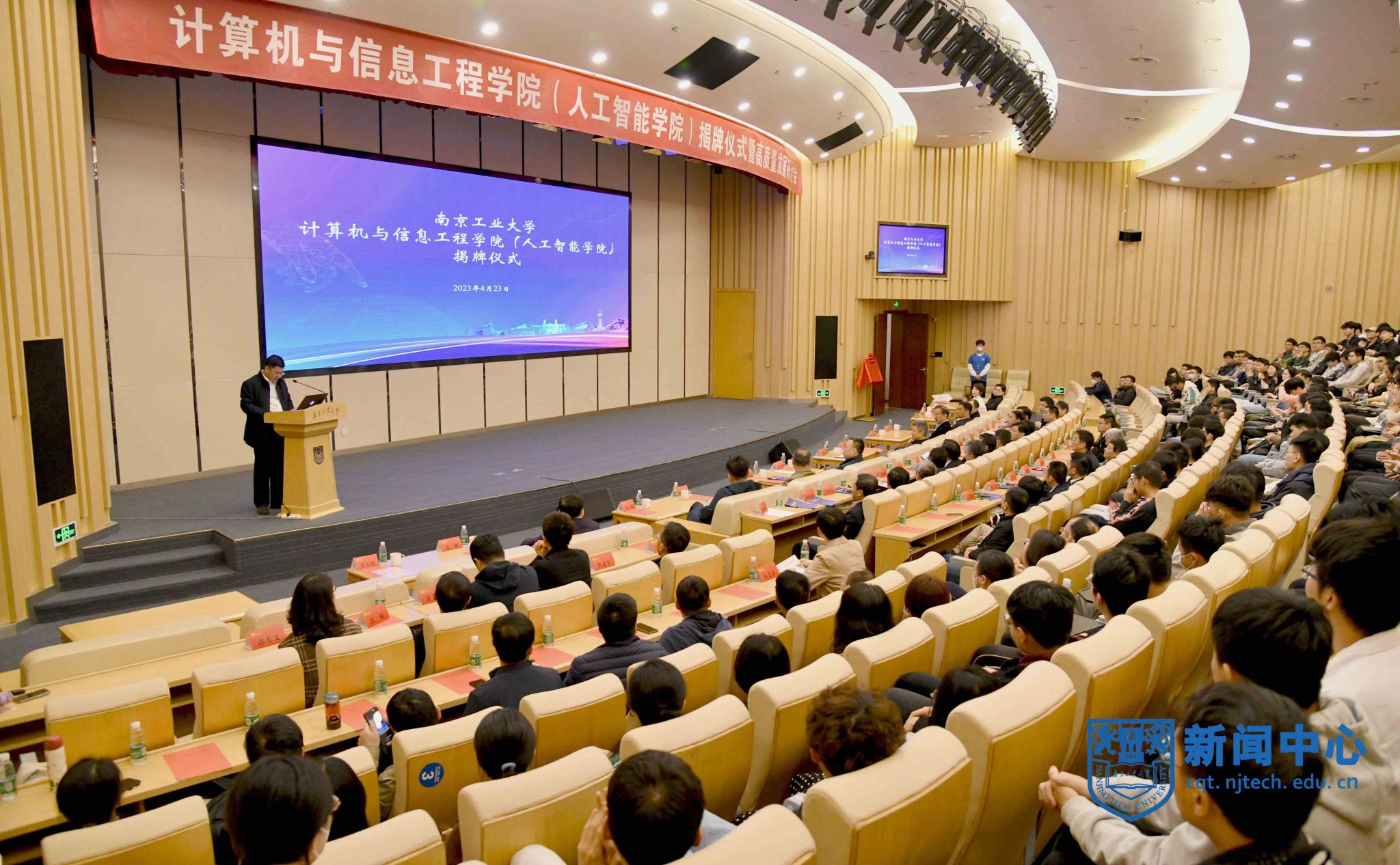 4月23日上午,计算机与信息工程学院(人工智能学院)揭牌仪式暨高质量发展研讨会在江浦校区弘毅楼五楼报告厅举行。校党委书记芮鸿岩,党委常委、副校长郭凯出席仪式。仪式由学院党委书记高辉庆主持。