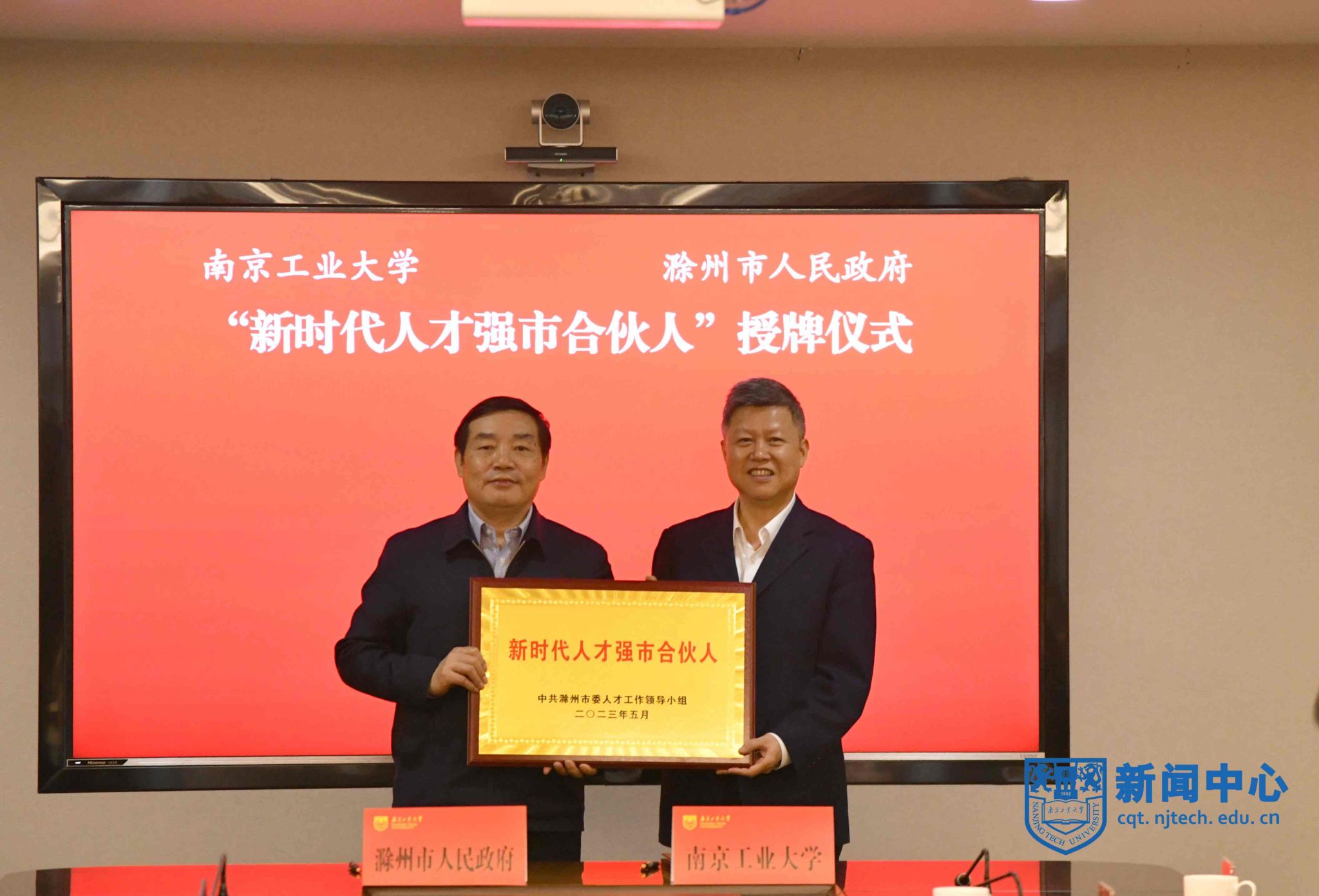会上,吴劲市长、蒋军成校长共同签署《滁州市人民政府米兰milan官方网站深化全面合作协议》,许继伟书记、芮鸿岩书记共同颁授“新时代人才强市合伙人”铜牌。