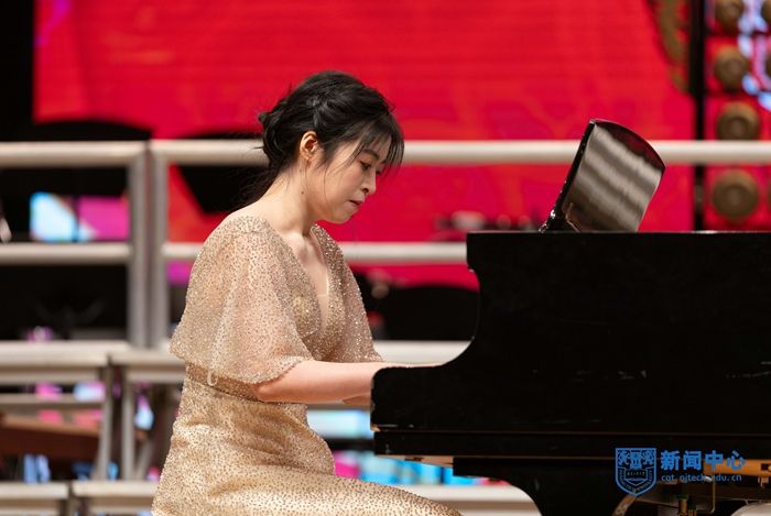 新年音乐会在《春节序曲》中拉开序幕。民乐合奏《鸿雁》融入蒙古族民歌元素,饱含着游牧民族的深情;《延河随想》以充满活力的节奏,热情讴歌了不朽的延安精神;大学生合唱团带来曲目《将进酒》《我爱你中国》,用优美的多部和声唱出了洒脱豪迈的情怀和对祖国深沉热烈的爱;钢琴独奏《浏阳河》和《皮黄》以精湛的技艺为观众带来了听觉盛宴;《故乡的云》《City of stars》以动听的歌喉博得现场阵阵掌声;《灯火里的中国》唱出了人民群众对祖国的美好祝福和对未来的期许。