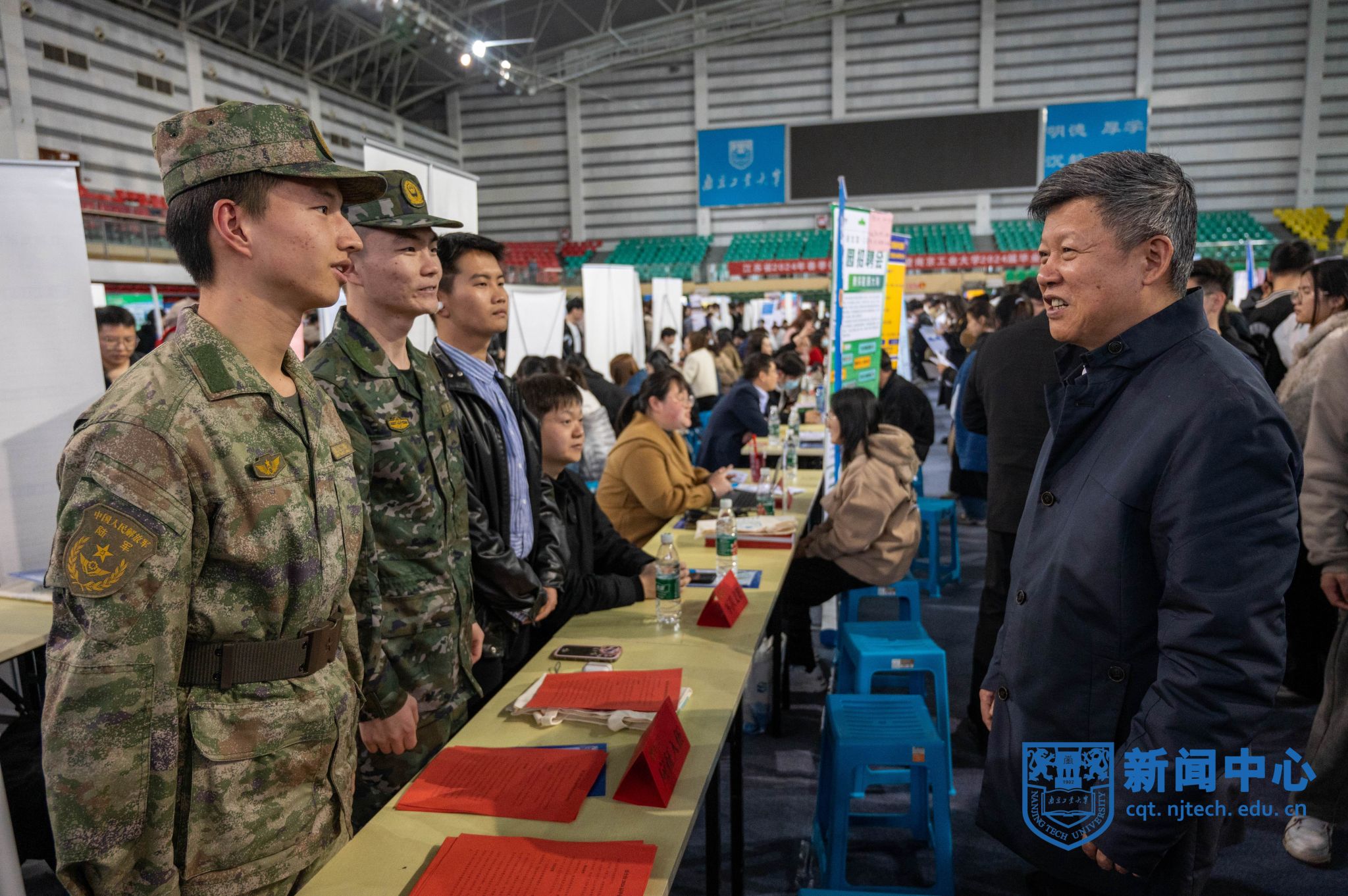 3月13日下午,江苏省2024年春季促就业攻坚行动暨米兰milan官方网站2024届毕业生综合招聘会在米兰行健体育馆举办。党委书记芮鸿岩、江苏省高校招生就业指导服务中心副主任黄炜现场走访招聘单位和求职毕业生。